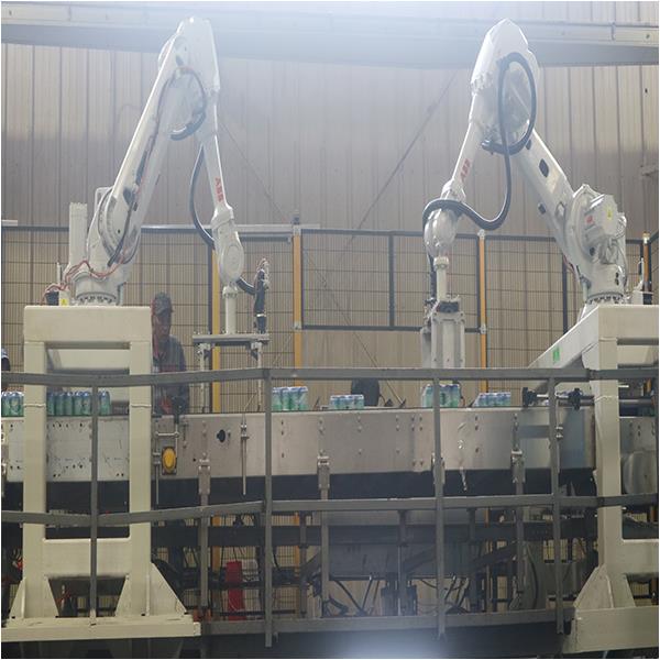 適用于方形磚包和玻璃瓶的緩沖輸送平臺,產(chǎn)能可達30000BPH.